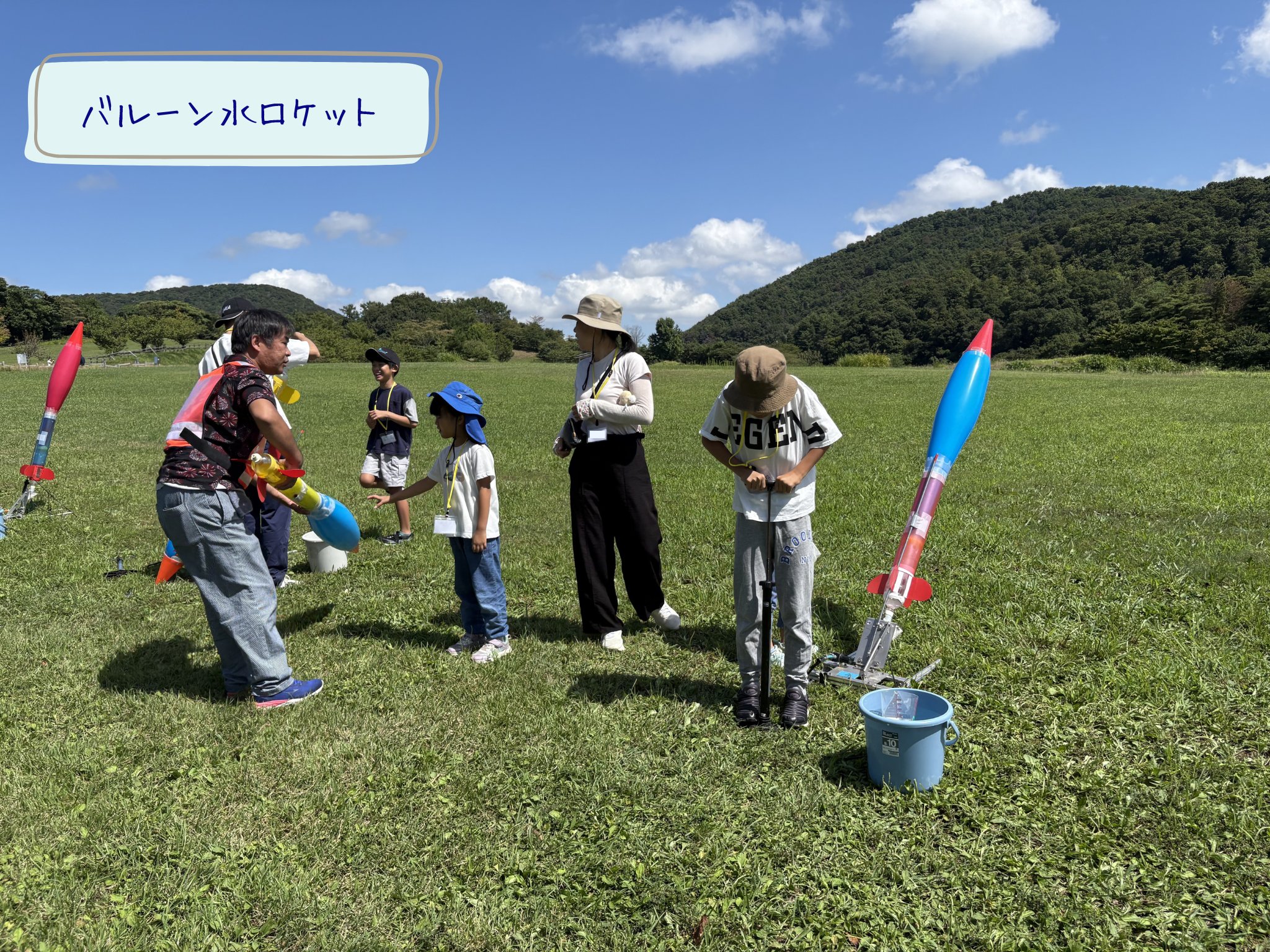 参加者は、5つのプログラムから2つ選んで親子一緒に体験♪クイズラリーにバルーン水ロケット、木のクラフト、星座板づくり、熱気球…と自然あふれるキゴ山でワクワク時間を大満喫でした!