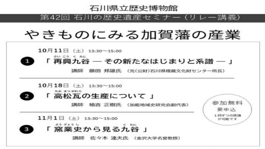 石川県立歴史博物館 第42回石川の歴史遺産セミナー「やきものにみる加賀藩の産業」