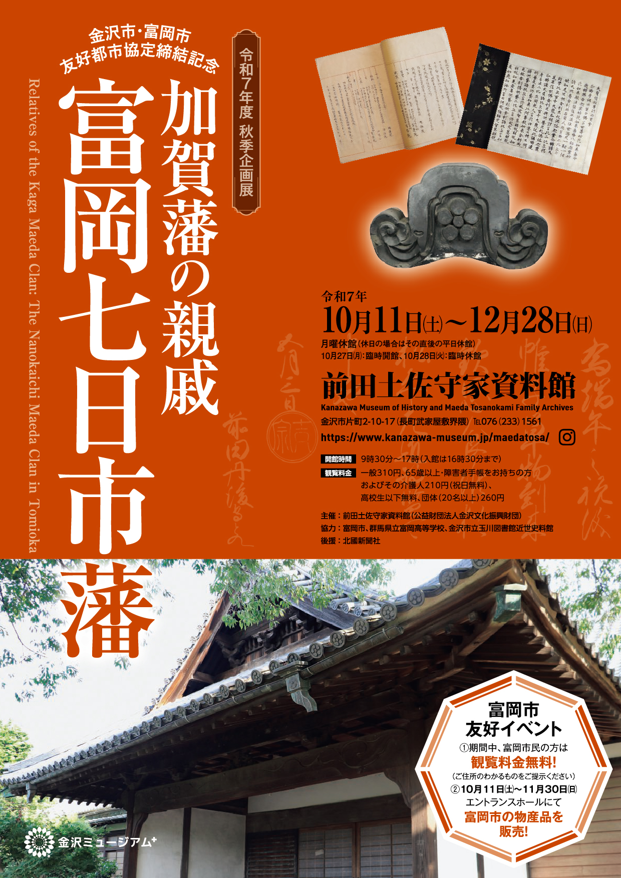 令和7年度 秋季企画展「加賀藩の親戚 富岡七日市藩」