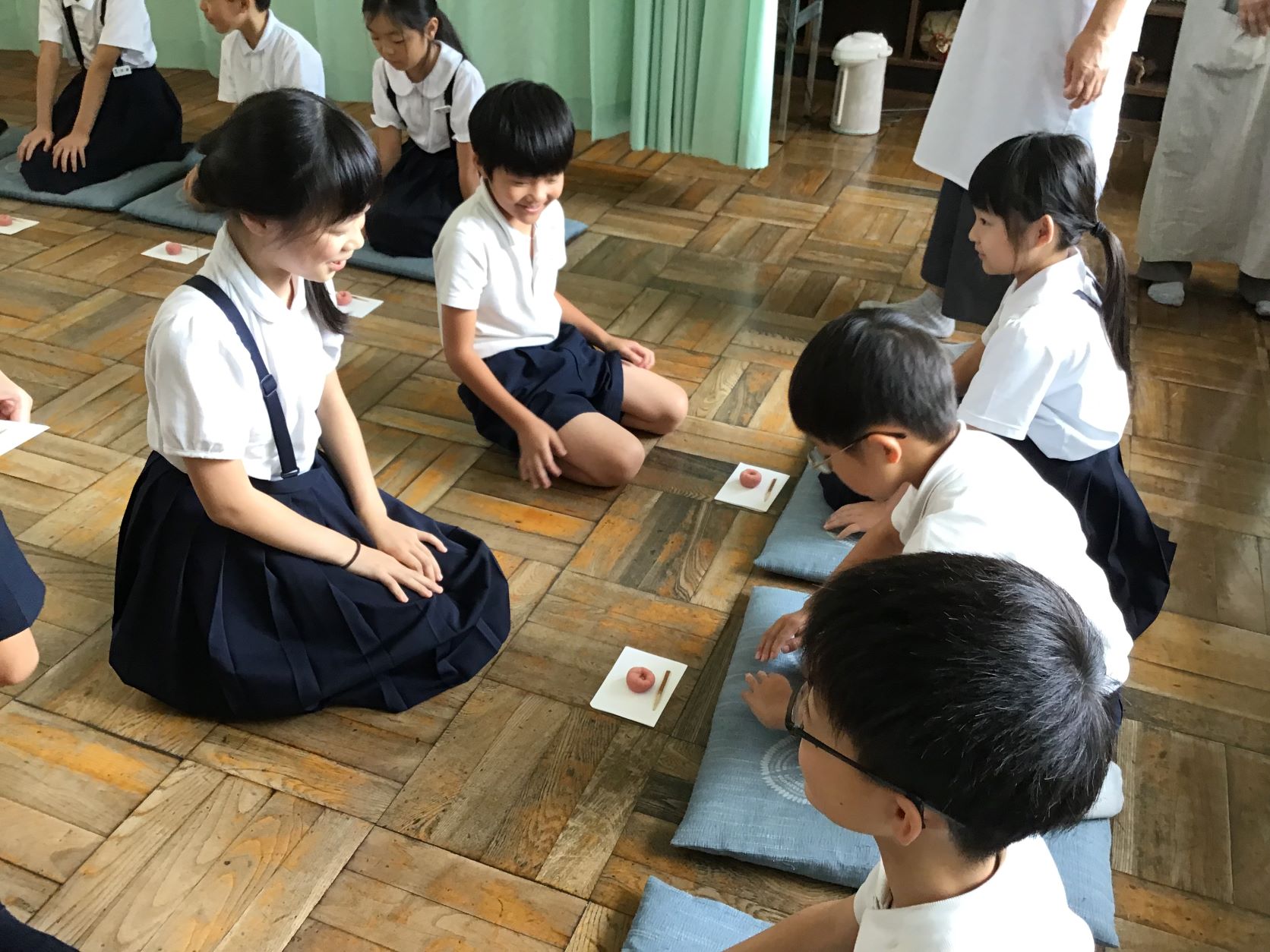 お茶を体験する際、もてなす側と客としての両方の側を交代で体験することで、それぞれの立場に立った作法を学ぶ。