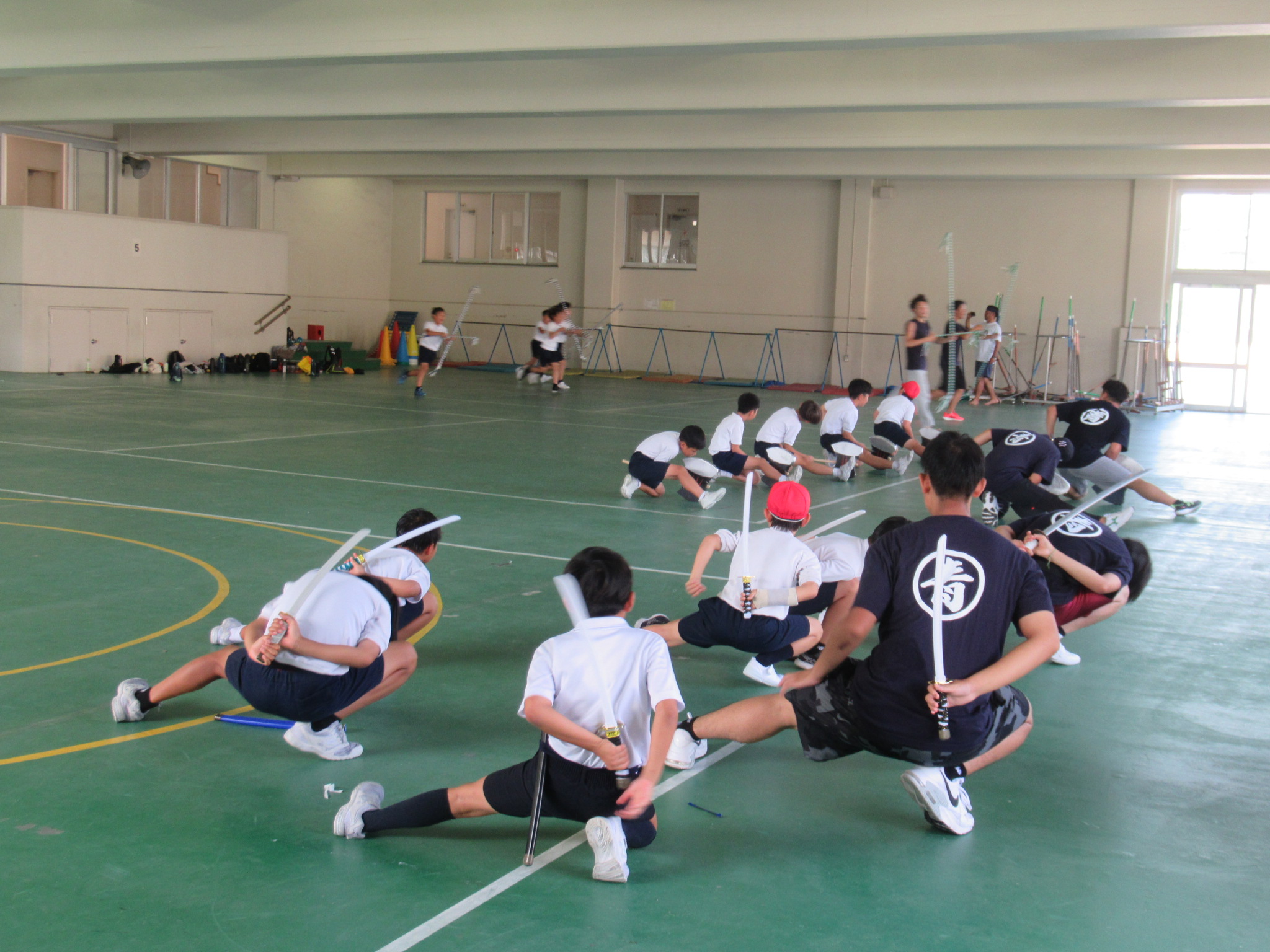 金石の町に残る祭事の演舞「悪魔祓い」を、実際に演じている地域の壮年会や青年団のみなさんに教えていただいた。実際に道具を持って動いたり、ポーズをとったり、笛を演奏したりした。最後には演舞の流れに沿って、みんなで演じることができた。