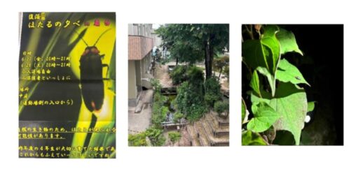 例年、4年生が総合の学習の一環として講師を招聘しホタルの育て方や本校でのこれまでのホタル生育に関する歴史などを学びます。学習後は講師の方より、幼虫をいただき、実際に秋から春にかけ、約10ヶ月をかけて、カワニナのえさを与え育てます。春には育てた幼虫をビオトープにはなし、成虫させ6月には身体を発光させ、中庭は綺麗に彩られます。今年度は、コロナ禍以降、一昨年度、久しぶりにホタルをビオトープにはなす機会を設け、今年度6月には見事に身体を発光させてくれました。地域協働の方々が中心となり、保護者・地域にも声をかけ2日間、中庭を開放し、夜のホタルの会が見事、復活されました。