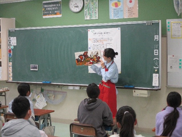 地域包括センターの皆様、地域ボランティアの皆様をお招きし、おじいちゃん、おばあちゃんへの思いやりの気持ちを育む、福祉体験活動を行った。