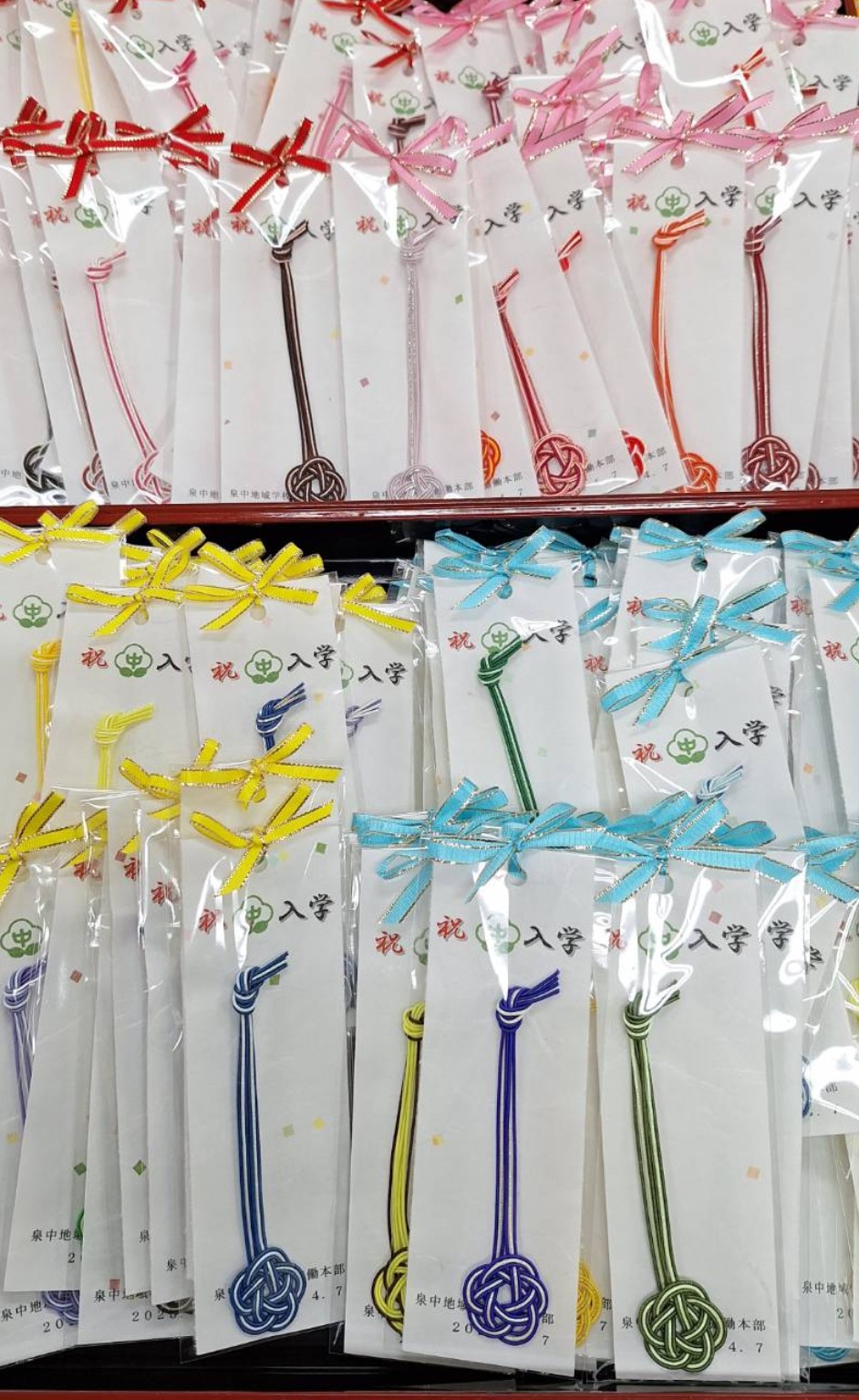 来年度入学の新1年生の入学祝いに水引のしおりを作って贈る。新しい環境に緊張している面持ちの新入生のお顔が毎年これでほころんでくれている。この作業を楽しみにしてくれていてボランティアも年々増えてきている。
