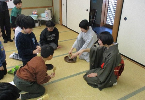 ・総合的な学習の時間に金沢の菓子文化について学びを深めた後、金沢に伝わる茶道文化の体験学習として実施した。